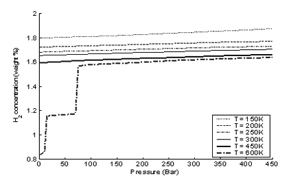 В данной работе проведено теоретическое определение максимального количества водорода, адсорбирующегося на поверхности ОУНТ при различных внешних температурах и давлениях.