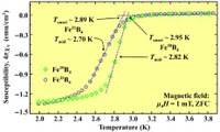 В работе [2] (Германия, Эстония, Италия, Франция, Бельгия, США) монокристаллы FeB4 синтезированы при высоких температурах (1523-3023 К) и давлениях (8-18 ГПа). Они действительно оказались сверхпроводящими, хотя и с довольно низкой критической температурой Tc = 2.9 К (рис. 1). Объемный характер сверхпроводимости подтвержден измерениями теплоемкости (рис. 2).