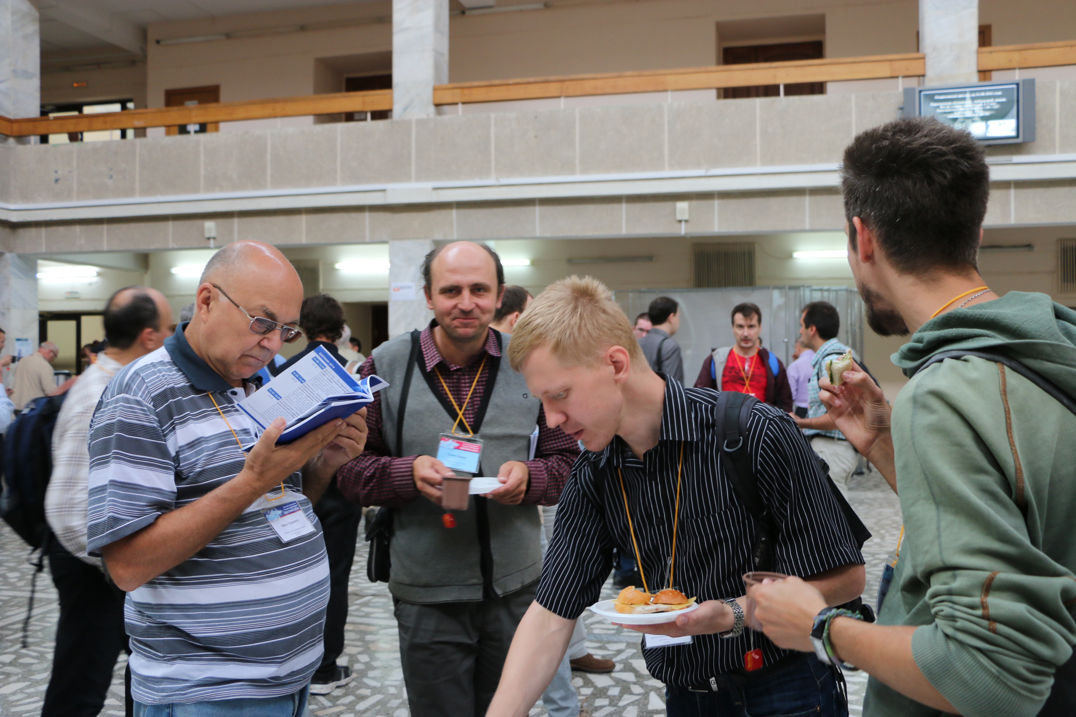 2016 год. Дмитрий Александрович Балаев (второй слева), заведующий лабораторией резонансных свойств магнитоупорядоченных веществ Института физики им. Л.В. Киренского Сибирского отделения Российской академии наук (ИФ СО РАН), с гостями Евро-Азиатского симпозиума "Прогресс в магнетизме" (EASTMAG-2016), организованного и проведенного в Красноярске.