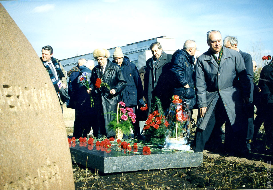 2004 год. Организатору Института физики им. Л.В. Киренского Сибирского отделения Российской академии наук академику Л.В. Киренскому исполнилось бы 95 лет. Прошли традиционные научные чтения памяти Леонида Васильевича, затем возложение цветов на его могилу. Леонид Васильевич похоронен в Академгородке вблизи института им созданного и носящего его имя. Слева с гвоздиками И.И. Гительзон, крайний справа Г.М. Лисовский. Красноярск
