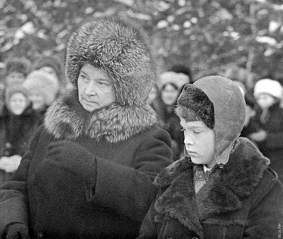 Зинаида Яковлевна Киренская с внуком на открытии памятника Леониду Васильевичу, 4 ноября 1974 г.