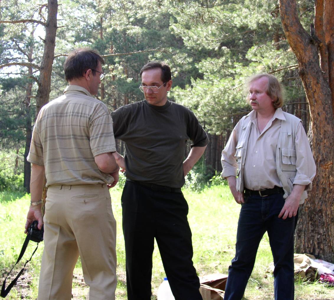 1999 год. Сотрудники Института физики им. Л.В. Киренского Сибирского отделения Российской академии наук (ИФ СО РАН). Слева направо: Давыдоа А.А., Яснов Н.Д., Втюрин А.Н. Красноярск. Академгородок.