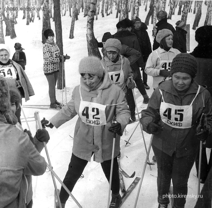 Соревнования по лыжам между сотрудниками институтов Научного центра в 1974 году. Красноярск. Академгородок.