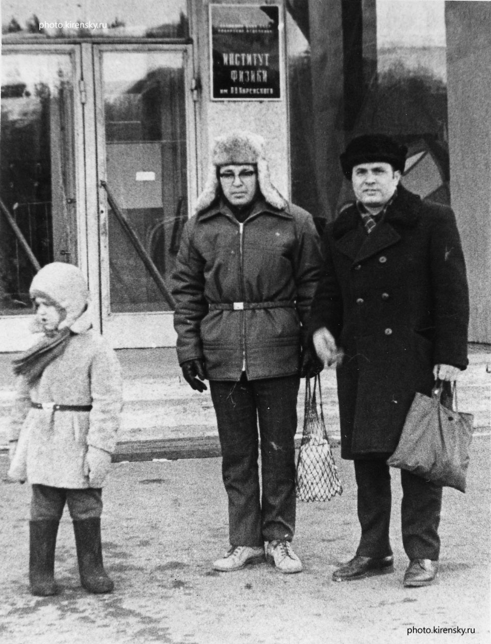 1988 год. Сотрудники теоретического отдела Института физики Сибирского отделения Академии наук СССР Заславский Г.М. (слева) и Захаров Ю.В. у здания института.
