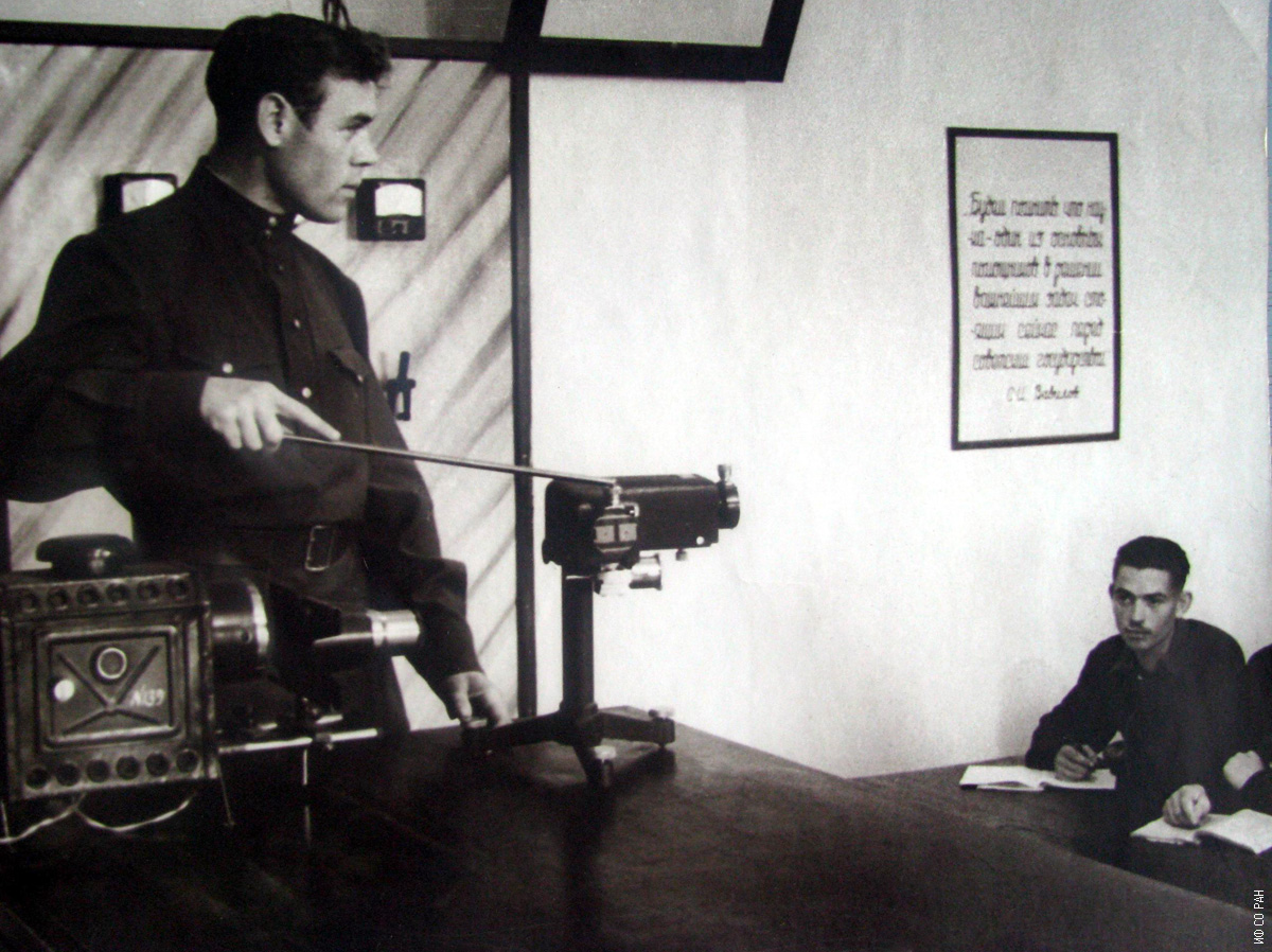 В лекционной аудитории аспирант Дрокин А.И., фото 1950 года.