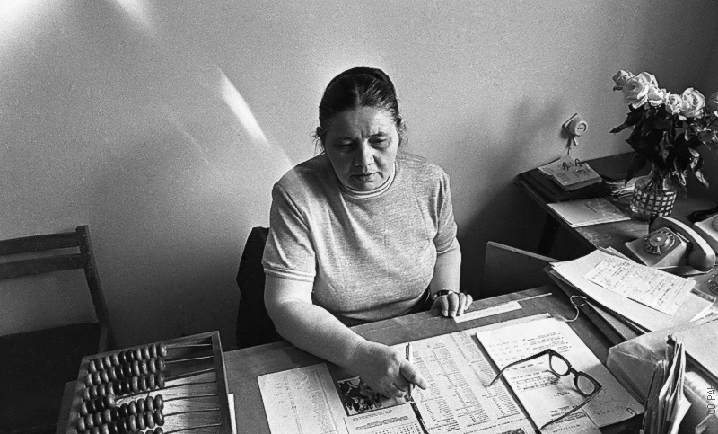 Шушкевич М. И., главный бухгалтер Института физики им. Л.В. Киренского Сибирского отделения Академии наук СССР (ИФ СО АН СССР). Фото 1975 года. Красноярск.