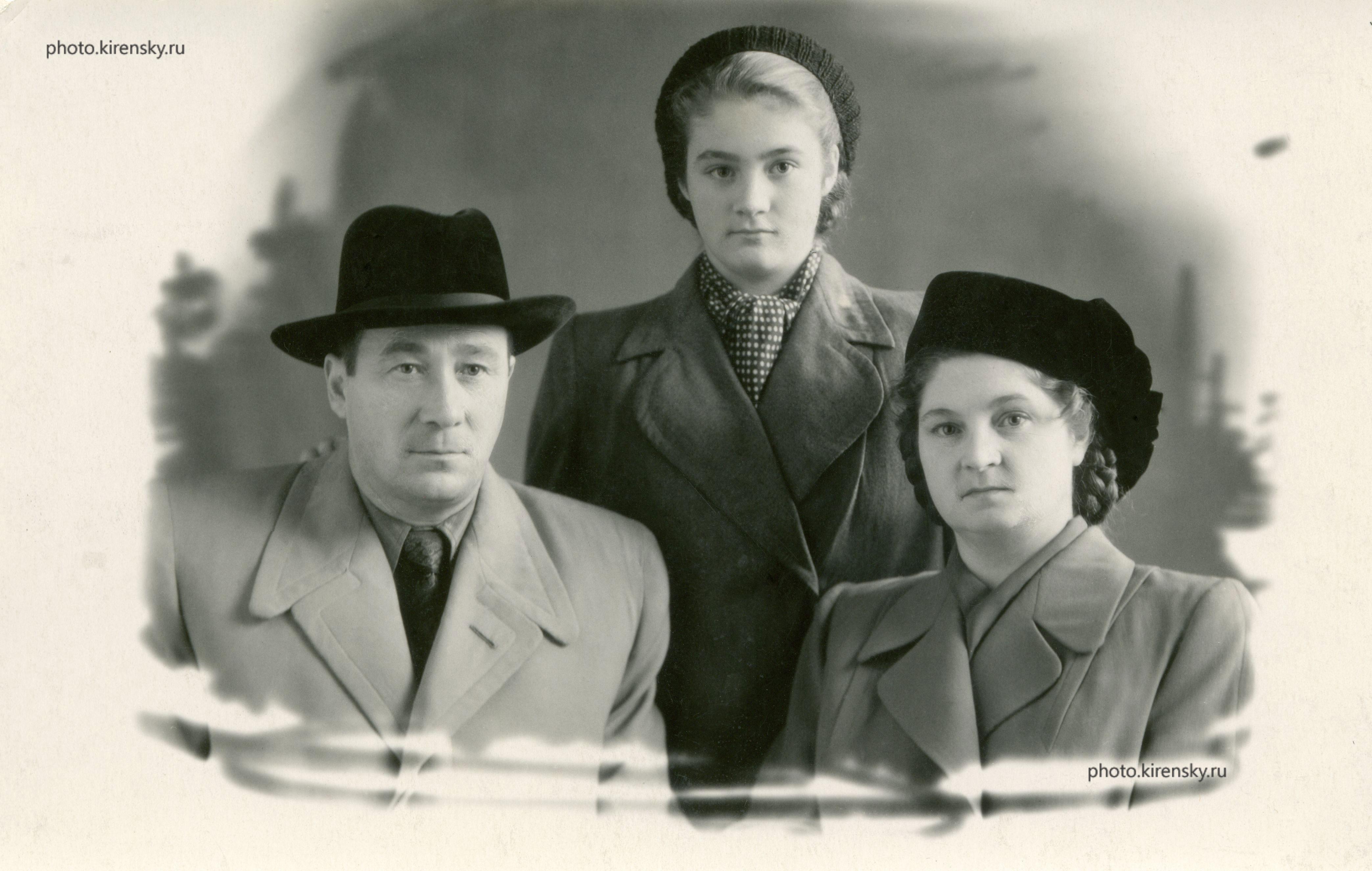 Академик Л.В. Киренский, организатор и первый директор Института физики Сибирского отделения Академии наук СССР (ИФ СО АН СССР), с супругой Зоей Яковлевной и дочерью Татьяной. Снимок 1953 года. Красноярск.