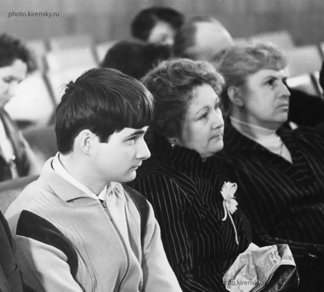 Апрель 1984 года. Леониду Васильевичу Киренскому, организатору и первому директору Института физики Академии наук СССР (так назывался институт в 1957 году), исполнилось 75 лет со дня рождения. В институте торжественно отметили эту дату. На снимке, слева направо: внук Леонида Васильевича, его дочь Татьяна Леонидовна Овчинникова и Мария Михайловна Калинина. Красноярск.