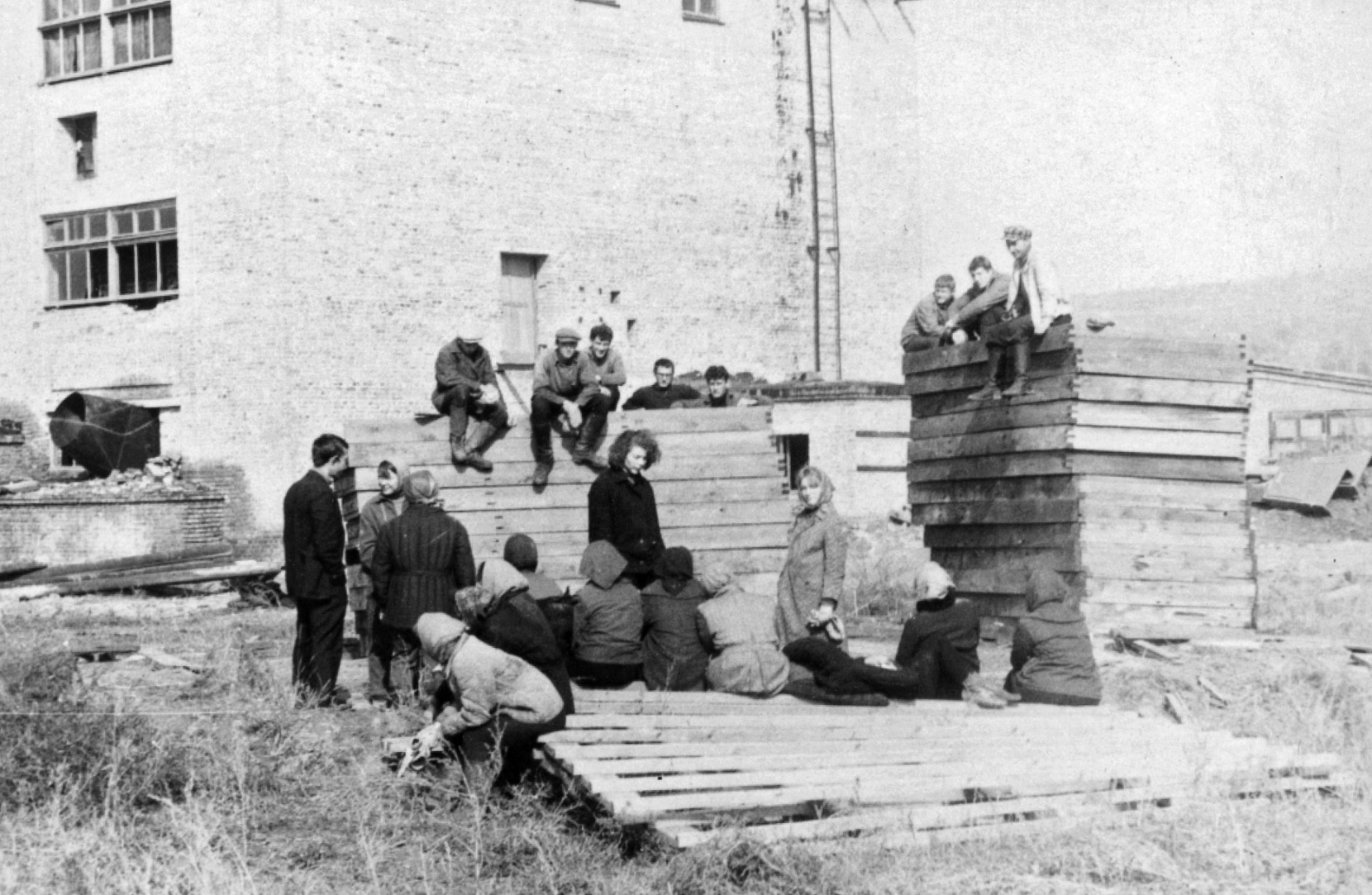 На строительстве главного корпуса Института физики, весна 1965 г.