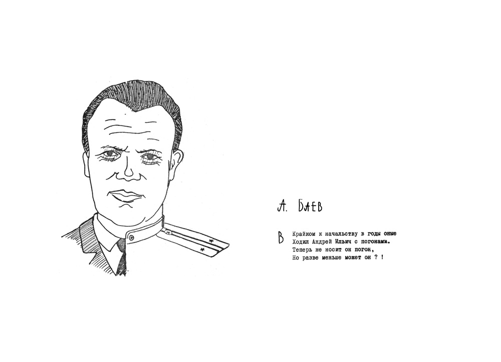 Дружеский шарж Баева А.И. из книги шаржей "Музей друзей", первая часть которой вышла в 1967 году. Авторами ее являются научные сотрудники Института физики им. Л.В. Киренского Сибирского отделения АН СССР О.А. Баюков и Н.С. Чистяков. Книга вышла малым тиражом (всего 100 экземпляров) и моментально разошлась среди персонажей книги, сотрудников института и была подарком авторов к юбилею института (10 лет).