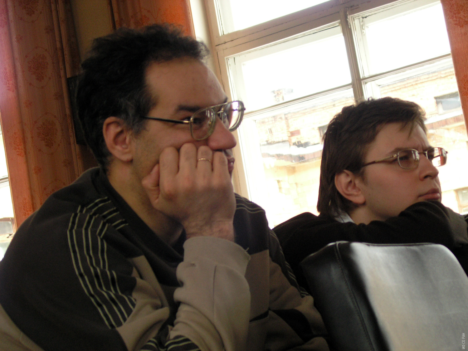 Дзебисашвили Д.М. (слева) и Коршунов М.М. на одном из семинаров теоретического отдела Института физики им. Л.В. Киренского Сибирского отделения Российской академии наук (ИФ СО РАН), фото 2003 года. Красноярск.