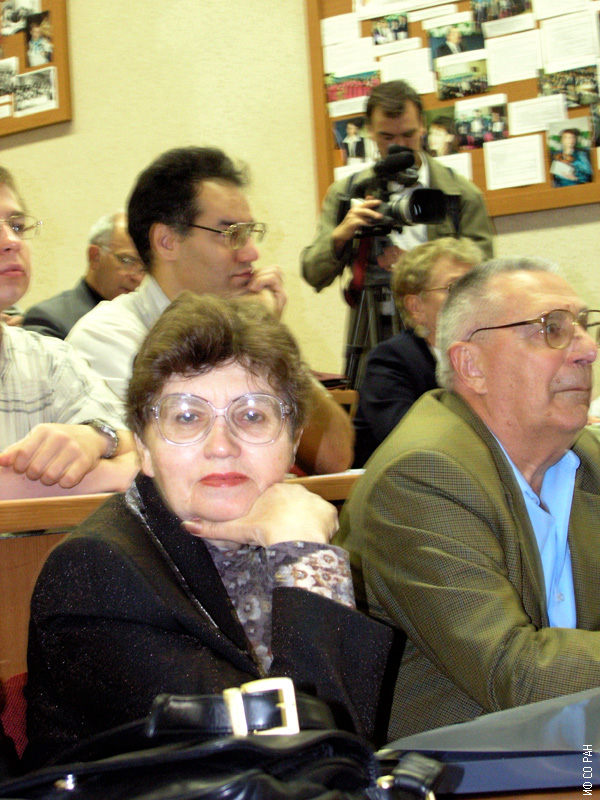 Эдельман Ирина Самсоновна, Игнатченко Вальтер Алексеевич и Дзебисашвили Дмитрий Михайлович (в центе, во втором ряду), сотрудники Института физики им. Л.В. Киренского Сибирского отделения Российской академии наук, на пленарном заседании Евро-Азиатского симпозиума «Прогресс в магнетизме» (EASTМAG-2004), организованного и проведенного в Красноярске в августе 2004 года.