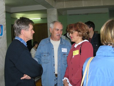 Сотрудники Института физики им. Л.В. Киренского Сибирского отделения Российской академии наук (ИФ СО РАН), слева направо: Исхаков Р. С., Жигалов В.С., Фролов Г. И. участники конференции "Магнитные материалы и магнитные технологии", август 2004 года. Иркутск.