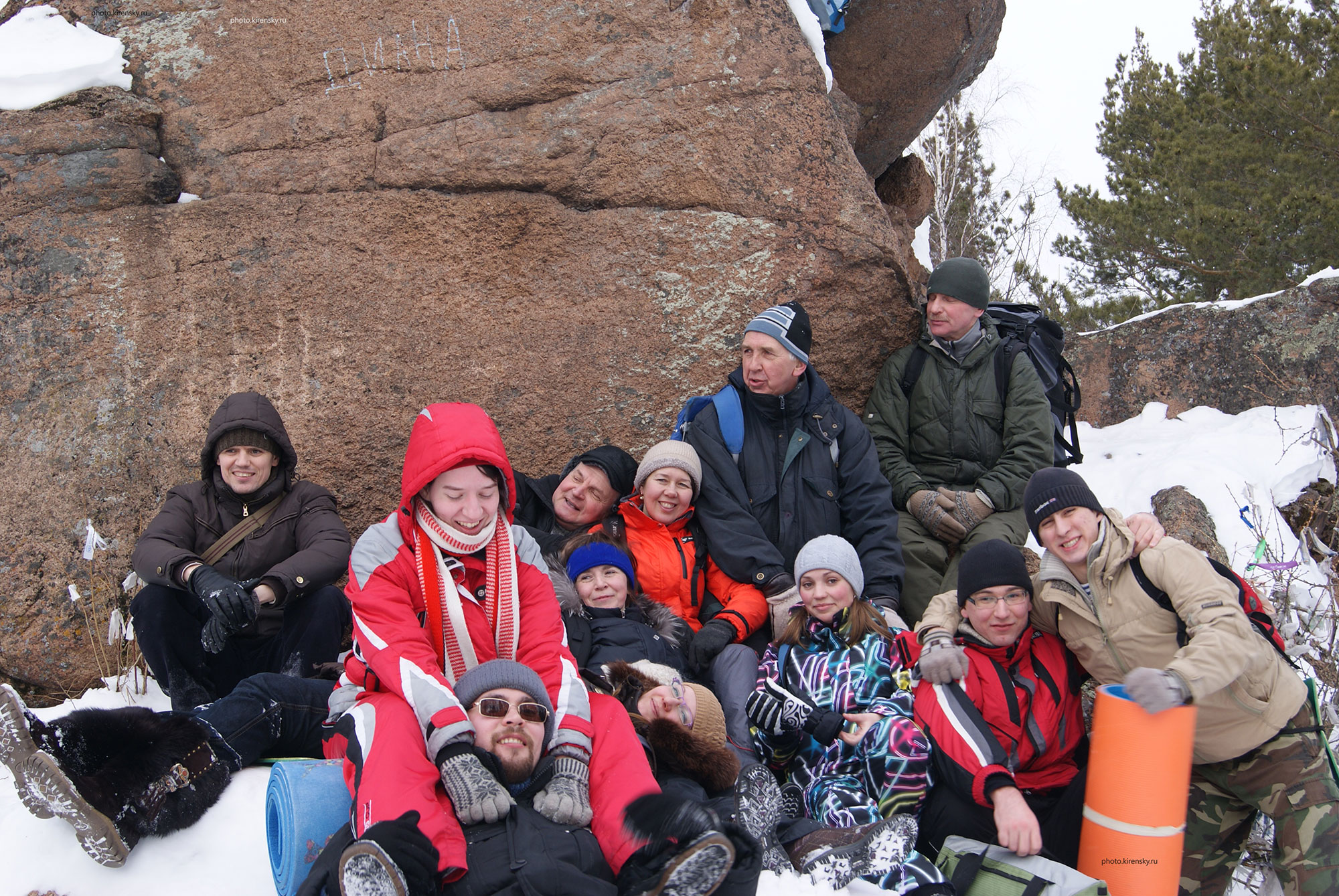 1 марта 2013 года. Сотрудники лаборатории физики магнитных явлений Института физики им. Л.В. Киренского Сибирского отделения Российской академии наук. Поход на Малый Беркут заповедника "Столбы". Стоят слева направо: Пётр Козлов, Сергей Лященко, Сергей Николаев, Илья Макаров, Елена Бондарева, Елена Яковлева, Сергей Геннадьевич Овчинников, Оксана Иванова, Алексей Соколов, Руслан Иванцов. Сидят слева направо: Иван Яковлев, Александр Сухачёв, Вячеслав Дудников. Красноярск.