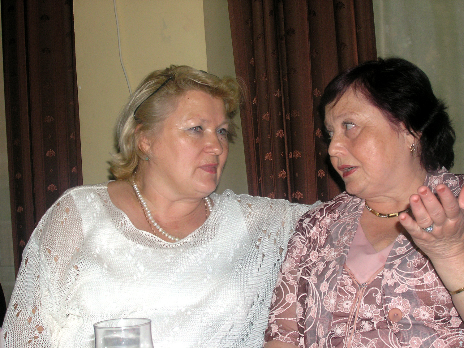 2005 год. Абакумова В.С. (слева), и Кочарова А.Г., сотрудники Института физики им. Л.В. Киренского Сибирского отделения Российской академии наук (ИФ СО РАН), в конференц-зале иститута на 40-летнем юбилее лаборатории радиоспектроспектроскопического структурного анализа, созданной в 1965 году. Красноярск.