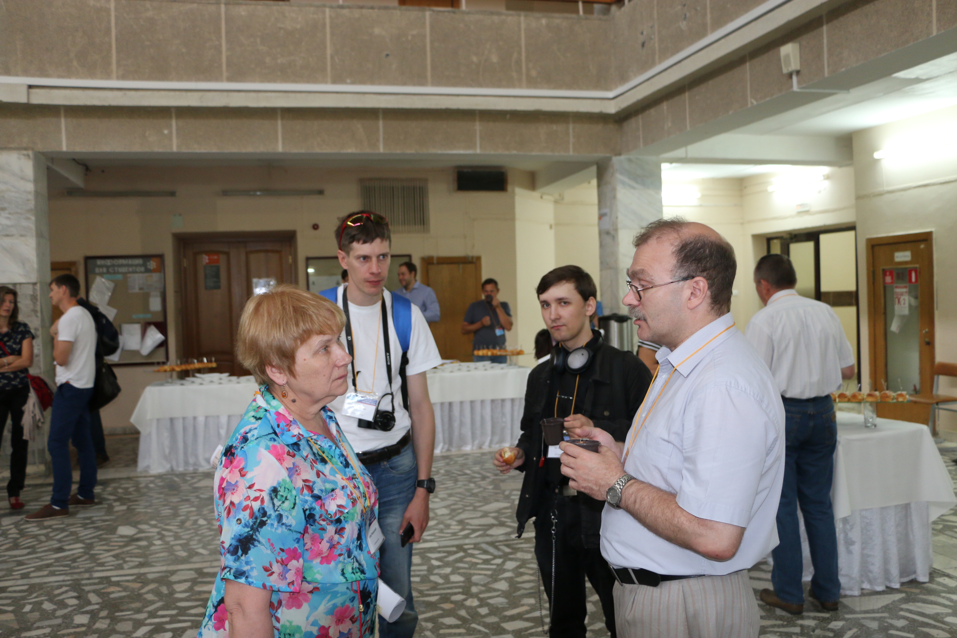 15 августа 2016 года. Крылов А.С. (крайний справа), старший научный сотрудник лаборатории молекулярной спектроскопии Института физики им. Л.В. Киренского Сибирского отделения Российской академии наук (ИФ СО РАН), с гостями на Евро-Азиатском симпозиуме "Прогресс в магнетизме" (EASTMAG-2016), организованном и проведенном в Красноярске в конгресс-холле Сибирского федерального университета (СФУ).