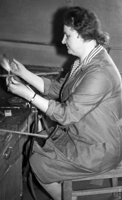 Кушнаренко Августа Сергеевна, стеклодув в экспериментальных механических мастерских Института физики им. Л.В. Киренского Сибирского отделения Академии наук СССР (ИФ СО АН СССР). Фото 1977 года. Красноярск.