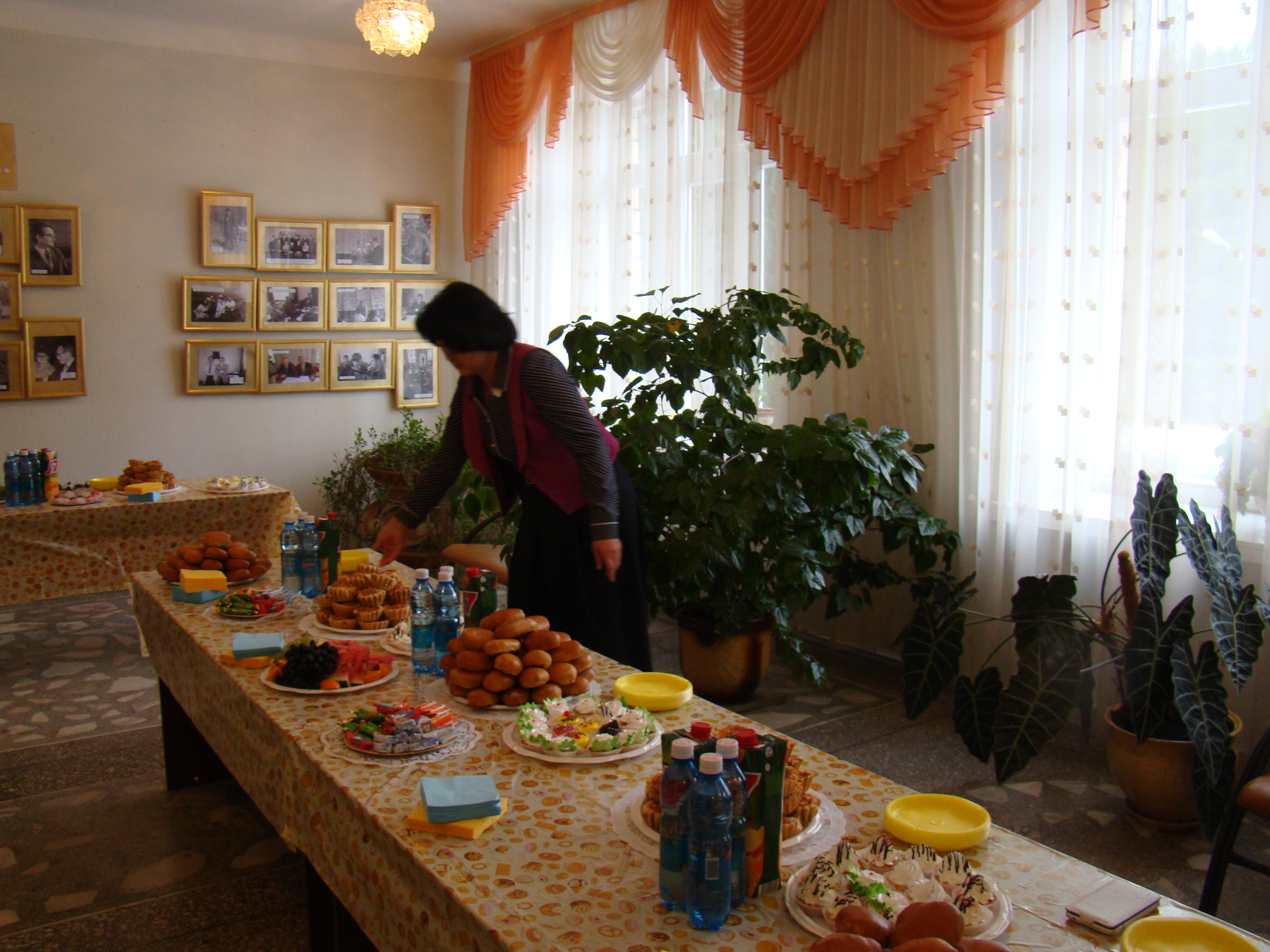12 октября 2016 года в Институте физики им. Л.В. Киренского Сибирского отделения Российской академии наук (ИФ СО РАН) отмечали юбилей – 60 лет со дня образования института. В холле института накрыты столы для чаепития сотрудников и гостей института. На фото одна из организаторов чаепития Л.А. Ли., ведущий технолог лаборатории магнитодинамики. Красноярск.