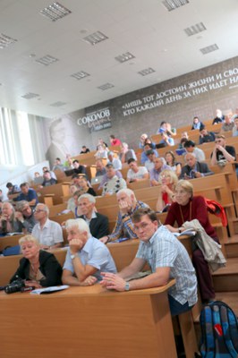 15-19 августа 2016 года в Красноярске состоялся VI Евро-Азиатский симпозиум "Прогресс в магнетизме" (EASTMAG-2016). Симпозиум проводился в конгресс-холле Сибирского федерального университета (СФУ). На снимке - время устных докладов. В первом ряду, справа-Орлов Юрий Сергеевич, старший научный сотрудник лаборатории физики магнитных явлений Института физики им. Л.В. Киренского Сибирского отделения Российской академии наук (ИФ СО РАН).