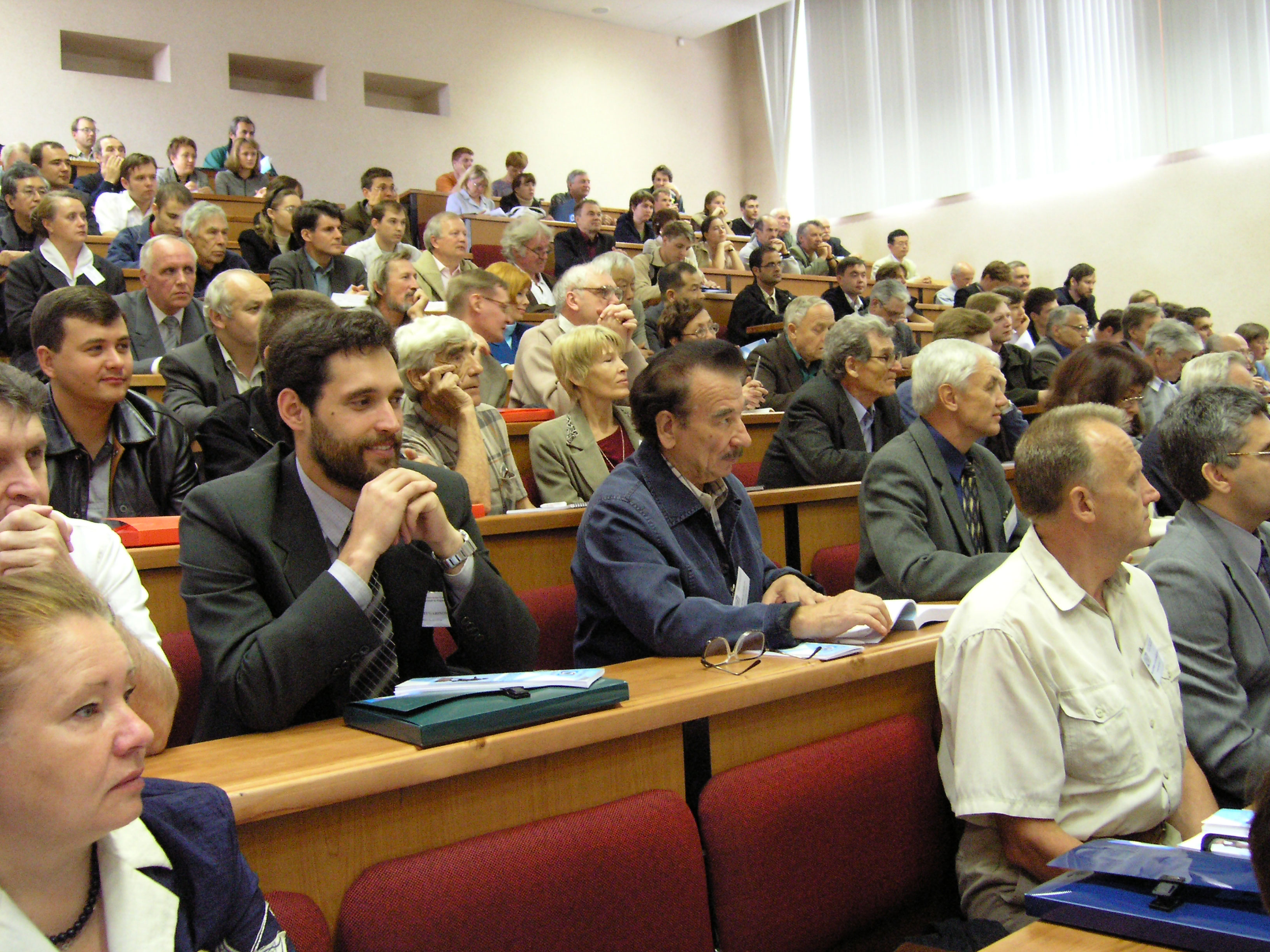 2004 год. 24-27 августа. Участники Евро-Азиатского симпозиума «Прогресс в магнетизме» (EASTMAG-2004), организованного и проведенного в Красноярске. Пленарное заседание. Во втором ряду сотрудники Института физики им. Л.В. Киренского Сибирского отделения Российской академии наук, слева направо: Тугаринов В.И., Фролов Г.И., Панкрац А.И.