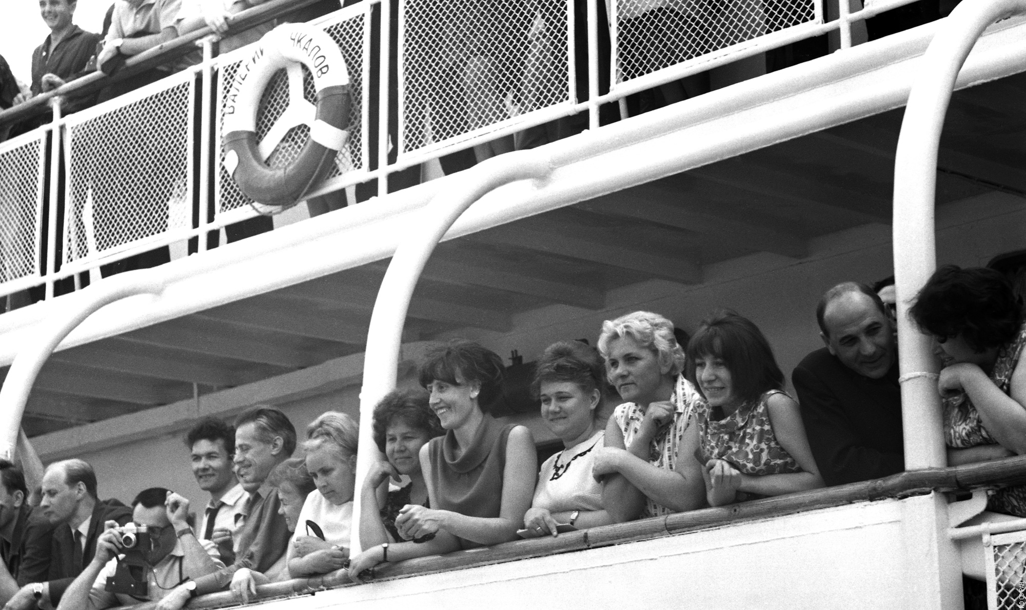 24 июня 1969 года на теплоходе «В. Чкалов» отправились участники Всесоюзного совещания по физическим свойствам монокристаллов ферритов, организованного и проведенного Институтом физики Сибирского отделения Академии наук СССР ( рейс Красноярск-Дудинка -Красноярск). Сотрудники Института физики, слева направо: Смолин Р.П., Тушков Б.П., Баюков О.А., участник совещания ( гость), участник совещания (гость), участник совещания (гость), гость, Протопопова Л.М., Рябинкина Л.И., Тищевская М.В., и далее гости совещания. Речной вокзал Красноярска.