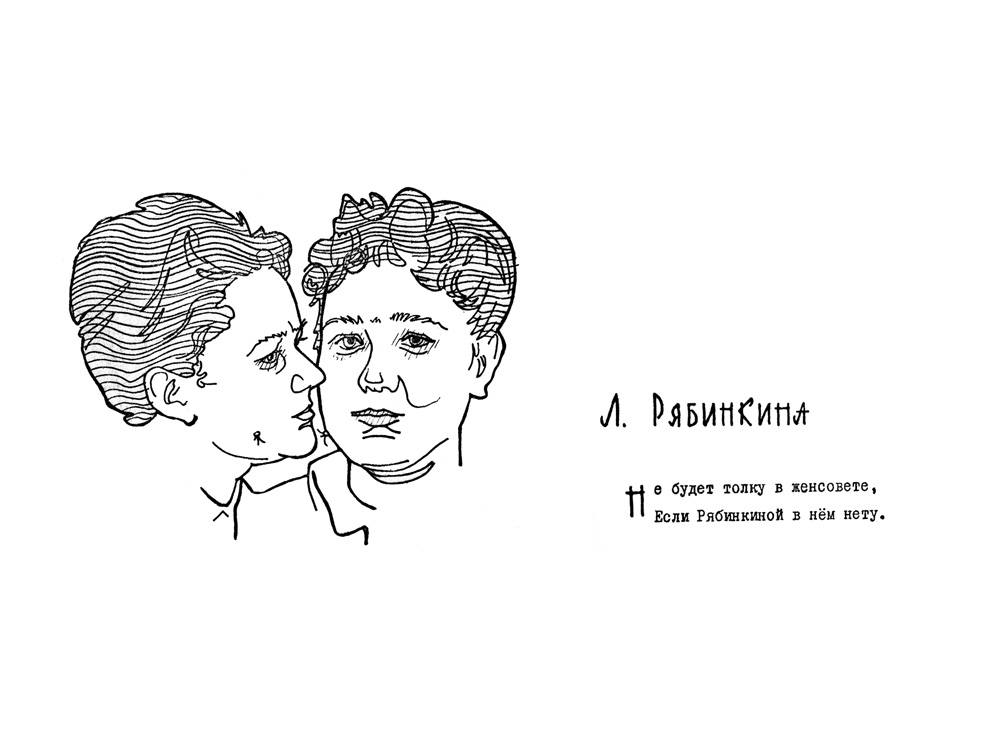 Дружеский шарж Рябинкиной Л.И. из книги шаржей и эпиграмм"Музей друзей", первая часть которой вышла в 1967 году. Авторами ее являются научные сотрудники института О.А. Баюков и Н.С. Чистяков. Книга вышла малым тиражом (всего 100 экземпляров) и моментально разошлась среди персонажей книги, сотрудников и была подарком авторов к юбилею института.
