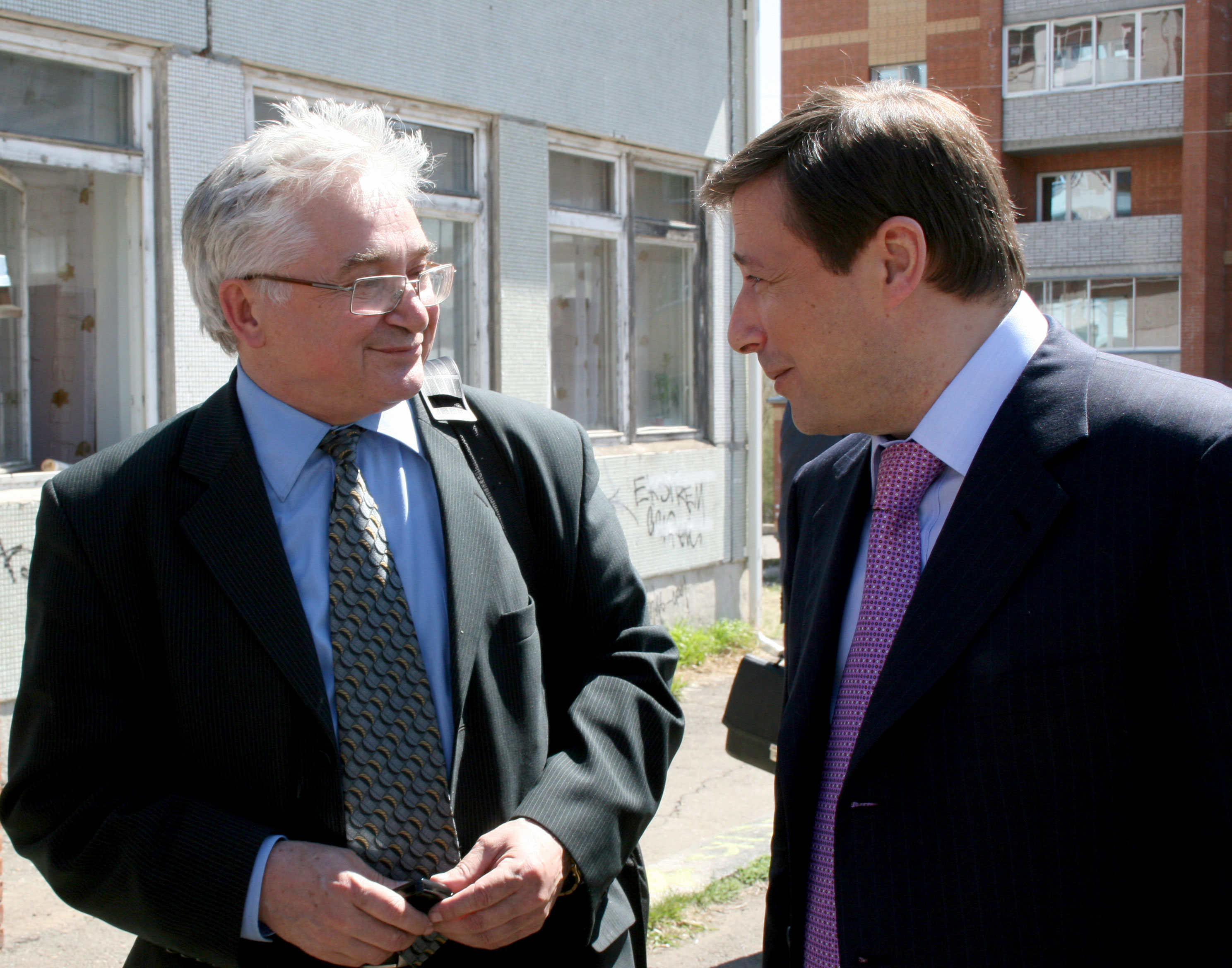 Академик В.Ф. Шабанов (слева), председатель Президиума Красноярского научного центра Сибирского отделения Российской академии наук ( КНЦ СО РАН), директор Института физики им. Л.В. Киренского СО РАН, с Губернатором Красноярского края Александром Геннадьевичем Хлопониным.