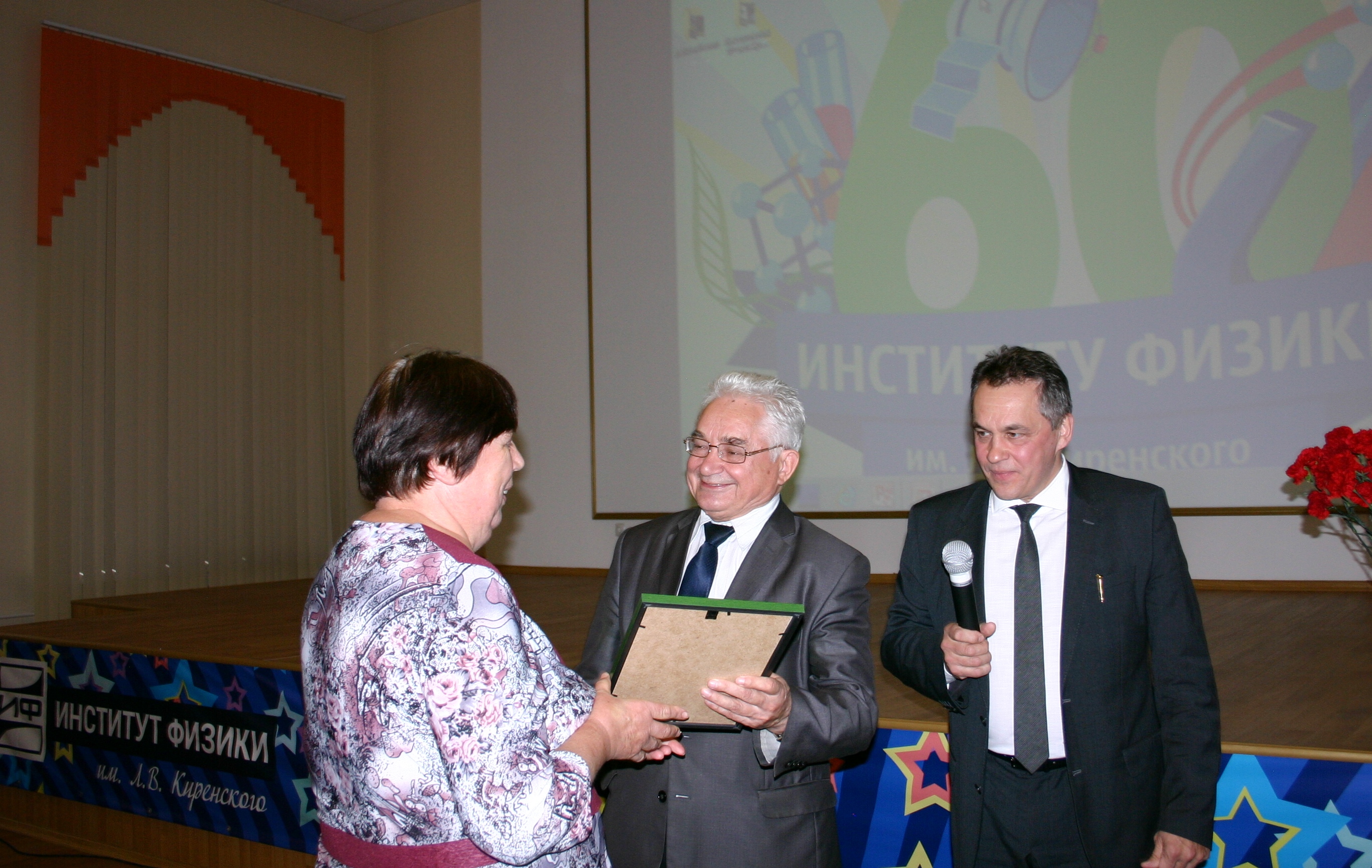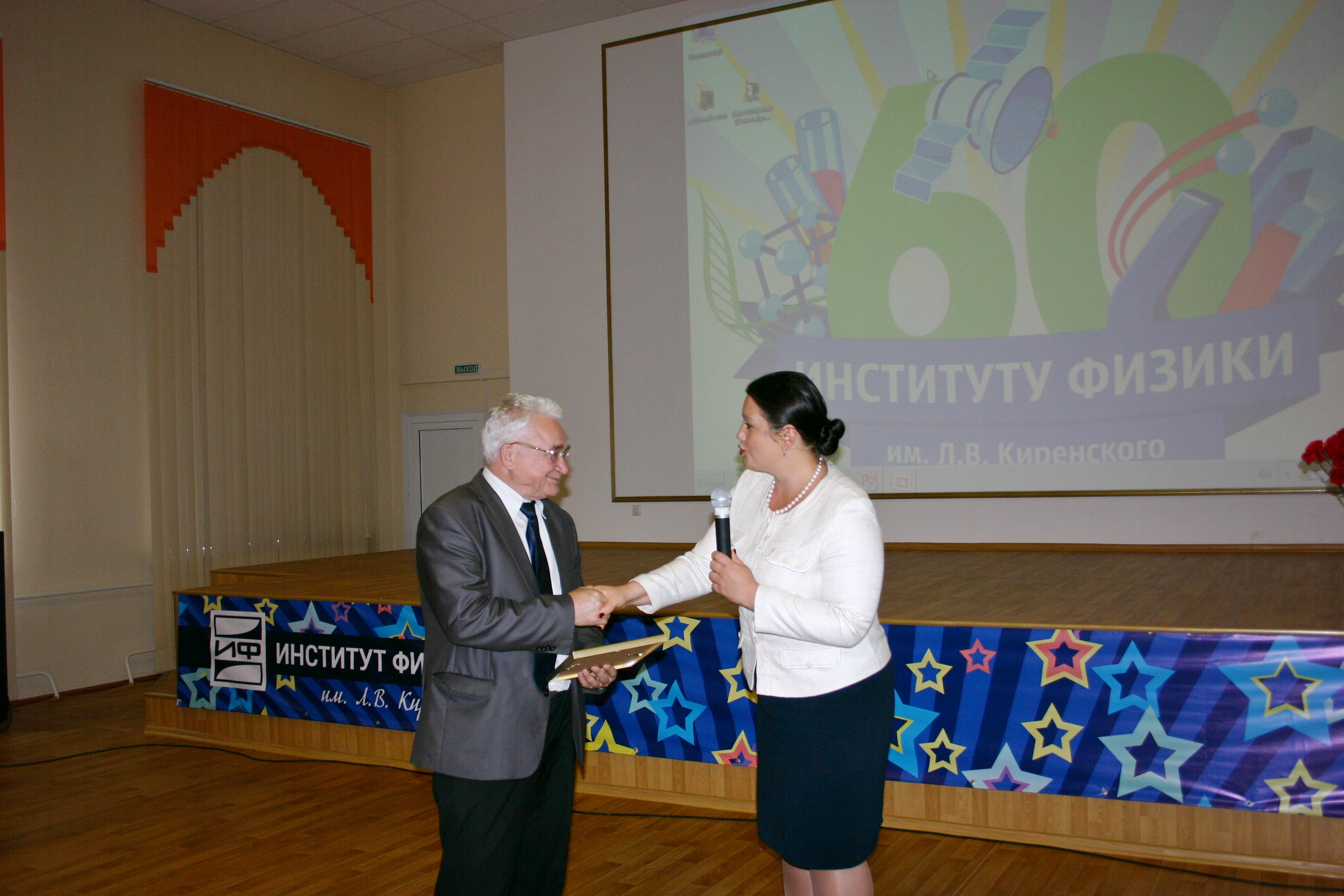 12 октября 2016 года в конференц-зале Института физики им. Л.В. Киренского Сибирского отделения Российской академии наук (ИФ СО РАН) проходило расширенное заседание ученого Совета, посвященное 60-летию образования института с участием сотрудников института, представителей администраций города и края, директоров предприятий-партнеров, директоров подразделений Федерального исследовательского центра "Красноярский научный центр СО РАН" (ФИЦ КНЦ СО РАН) и других гостей.