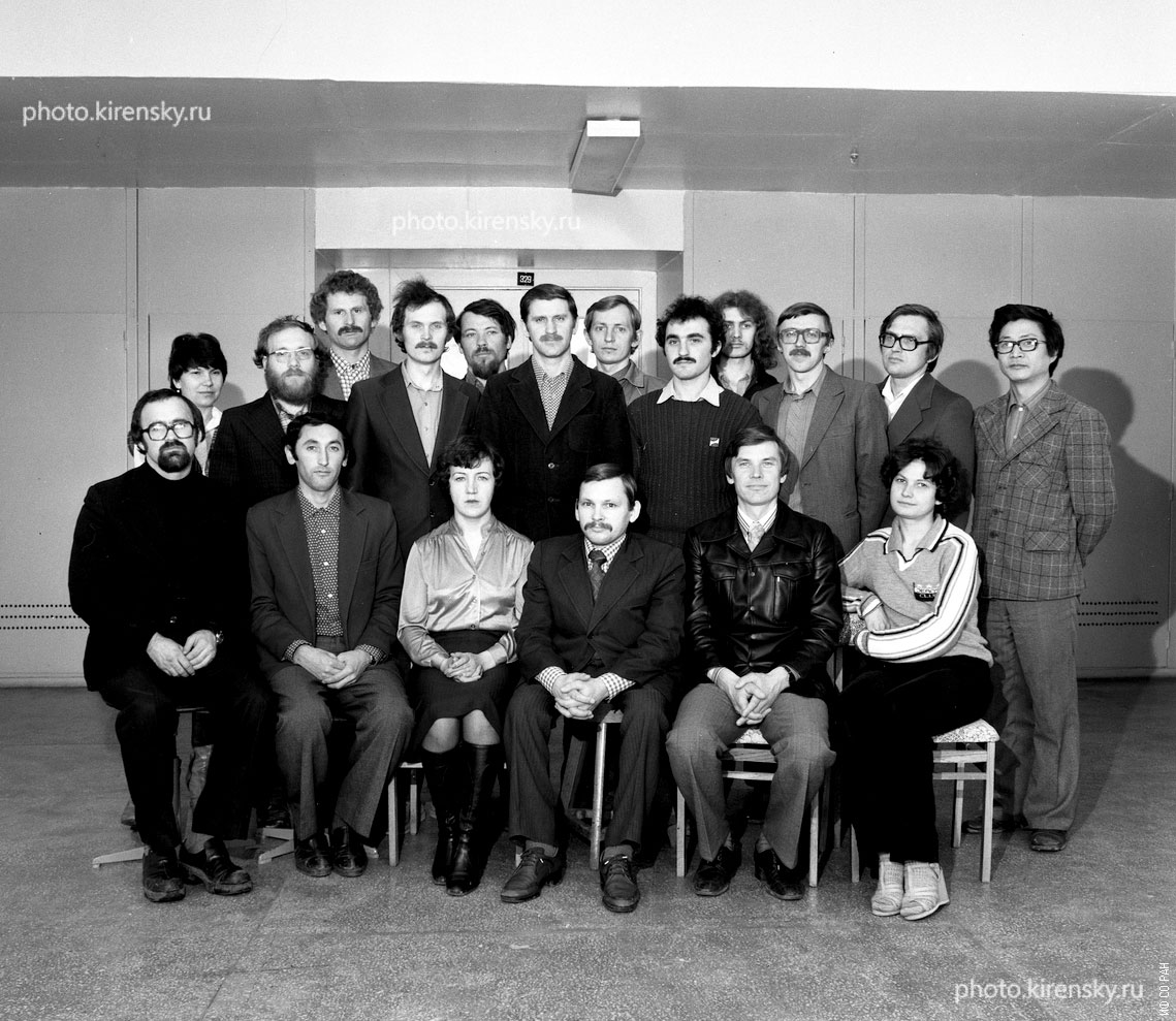 1981 год. На снимке сотрудники лаборатории когерентной оптики Института физики им. Л.В. Киренского Сибирского отделения Академии наук СССР (ИФ СО АН СССР). В первом ряду сидят (слева направо): Архипкин В.Г., Кодиров М.К., Мелкозерова Л.В., Тимофеев В.П., Попов А.К..- заведующий лабораторией, Перцева Л.В. В среднем ряду (слева направо): Подавалова О.П., Садовничий А.Е., Мысливец С.А., Лукиных В.Ф., Эпштейн В.Ш., Кияшко В.А., Слабко В.В, Им Тхек Де. В третьем ряду (слева направо): Болотских Л.Т., Высотин А.Л., Макаров Н.П., Александровский А.С. Красноярск.