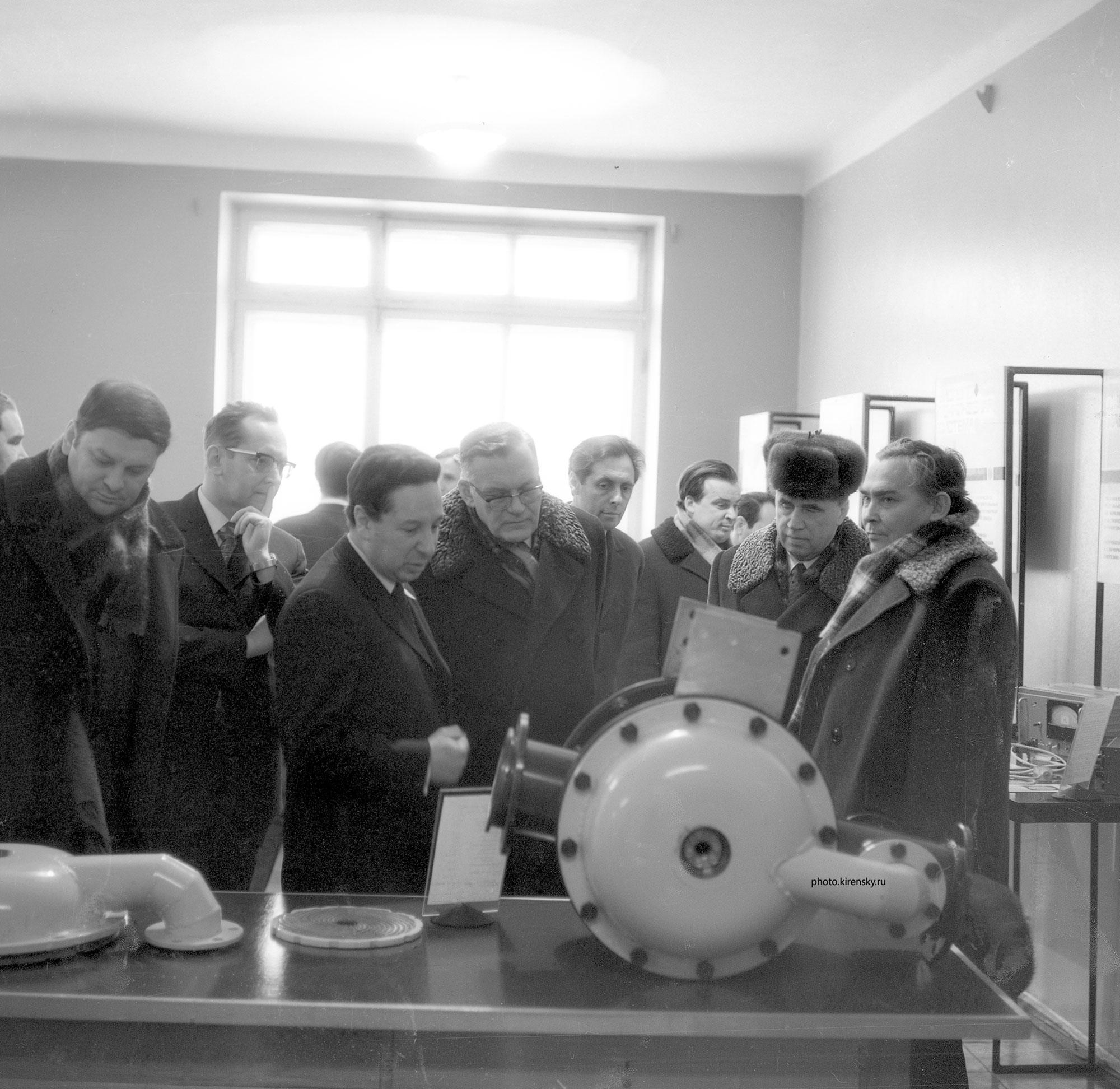 В 1969 году Институт физики Сибирского отделения Академии наук СССР посетили заместитель председателя Государственного комитета СССР по науке и технике Кириллин В.А. и первый секретарь Красноярского краевого комитета коммунистической партии Советского Союза Долгих В.И. В лаборатории сильных магнитных полей института, слева направо: Долгих В.И., Александров К.С., Лундин А.Г. Кириллин В.А., Гительзон И.И., Калинин В В., ? , Терсков И.А. Красноярск.