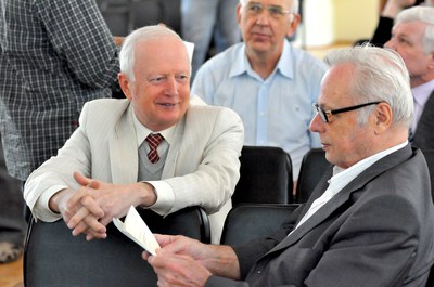 9 апреля 2009 года. Конференц-зал Института физики им. Л.В. Киренского Сибирского отделения Российской академии наук. Торжественное собрание, посвященное 100-ю со дня рождения академика Киренского Л.В., организатора и первого директора института. В первом ряду сотрудники института, слева направо: Исхаков Р.С., Вальков В.В., Беляев Б.А., Игнатченко В.А. Красноярск.