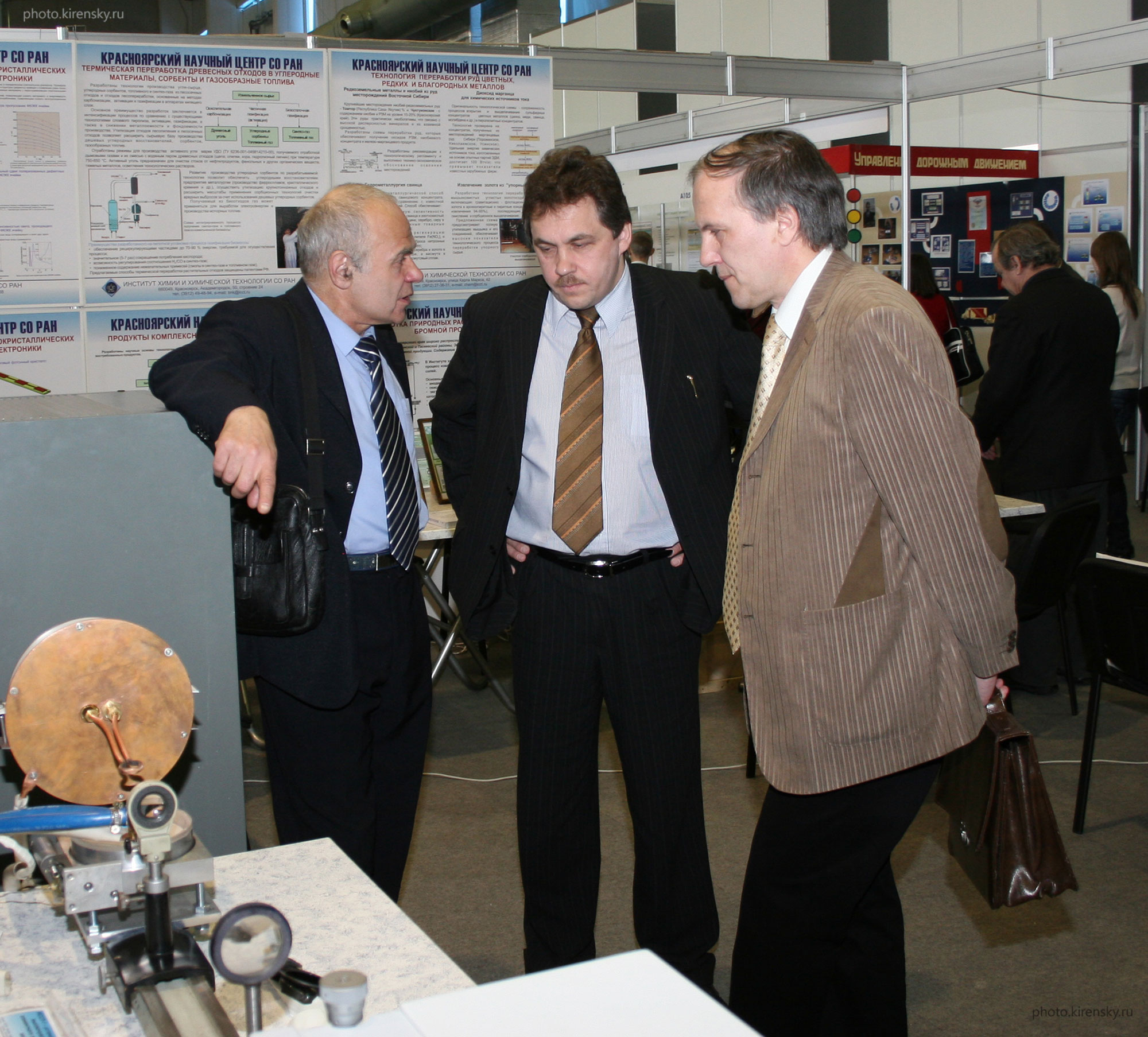 2009 год. На выставке Инновационного форума в Красноярске, слева направо: Чурилов Григорий Николаевич, заведующий лабораторией аналитических методов исследования вещества Института физики им. Л.В. Киренского Сибирского отделения Российской академии наук, Волков Никита Валентинович, заместитель директора Института физики по научной работе и заведующий лабораторией радиоспектроскопии и спиновой электроники, делятся впечатлениями о выставки с гостем форума.