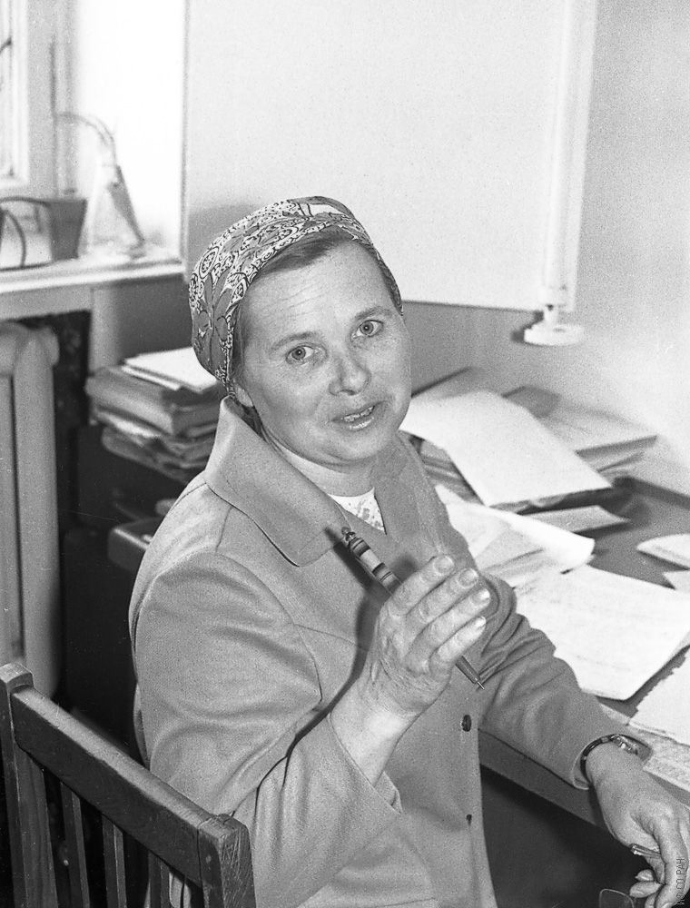 Зайцева Мария Пантелеймоновна, старший научный сотрудник лаборатории кристаллофизики Института физики им. Л.В. Киренского Сибирского отделения Академии наук СССР (ИФ СО АН СССР). Фото 1976 года.