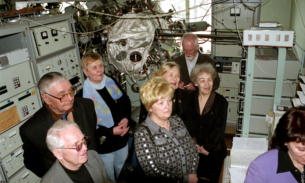 Экскурсия ветеранов журналистики Красноярска в лаборатории физики магнитных явлений. Слева направо: И Шулинин, И. Бывших, Л. Черепанова, Л. Комарова, Г. Шелудченко, Г. Вахменина, В. Зыков, фото 2009 г.