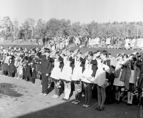 Освоение новой, так называемой «верхней», площадки Академгородка началось с возведения нового здания школы № 41, которое было сдано в эксплуатацию к началу учебного 1977 года. На фото 1 сентября 1977 года у здания новой школы.