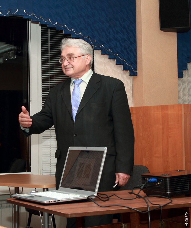 Зырянов В.Я., доктор физико-математических наук, профессор, заведующий лабораторией молекулярной спектроскопии Института физики им. Л.В. Киренского Сибирского отделения Российской академии наук (ИФ СО РАН), Участник, семинара, посвященного 100-летию со дня рождения Коршунова А.В, заведующего отделом оптики Института физики им. Л.В. Киренского ИФ СО РАН, 2011 год, Красноярск, дом ученых Академгородока.