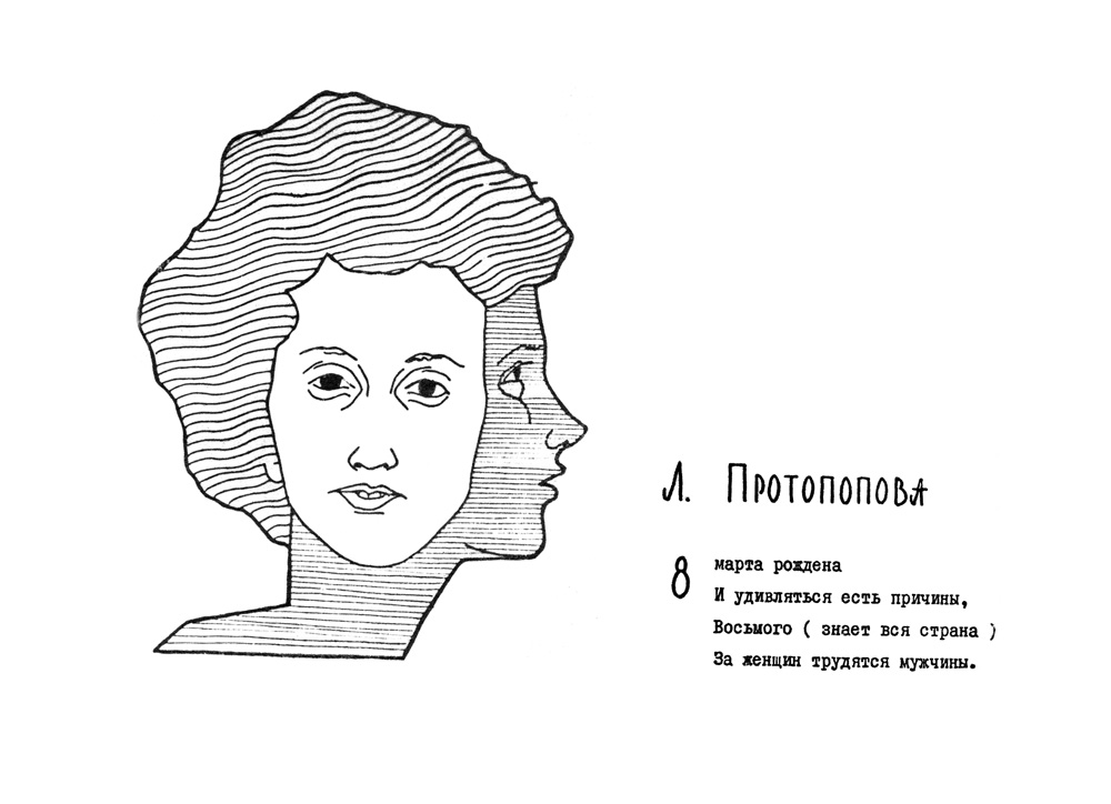 Дружеский шарж Протопоповой Л.М. из книги шаржей и эпиграмм"Музей друзей", первая часть которой вышла в 1967 году. Авторами ее являются научные сотрудники института О.А. Баюков и Н.С. Чистяков. Книга вышла малым тиражом (всего 100 экземпляров) и моментально разошлась среди персонажей книги, сотрудников и была подарком авторов к юбилею института.